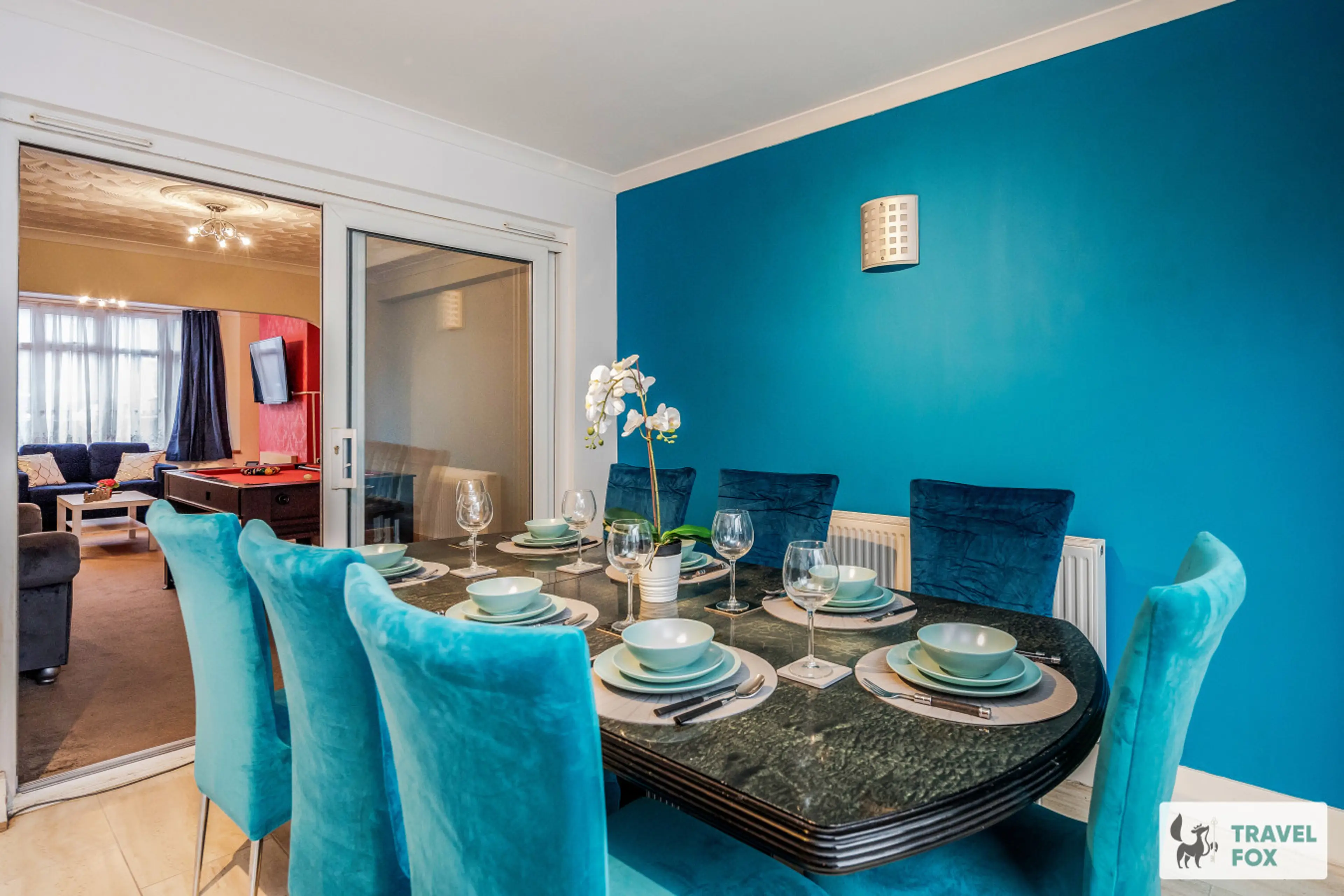 About this space Louisa’s Stay is a spacious six-bedroom house with free parking on the drive, Netflix and Wifi. With six bedrooms and three bathrooms it’s perfect for large groups. The pool table, large garden for dining al fresco and fun décor plus fast Wifi and workspace make it ideal for weeke...