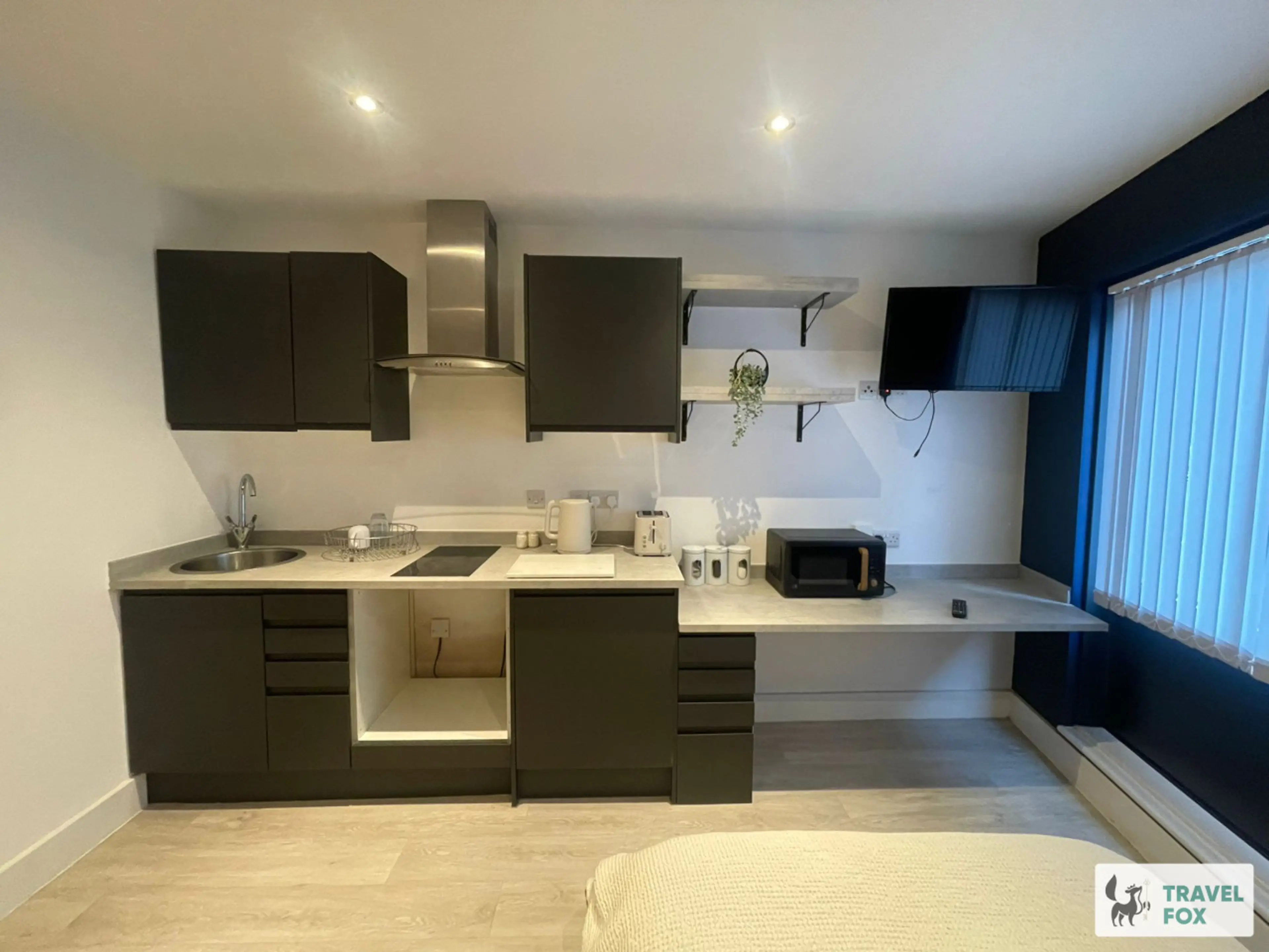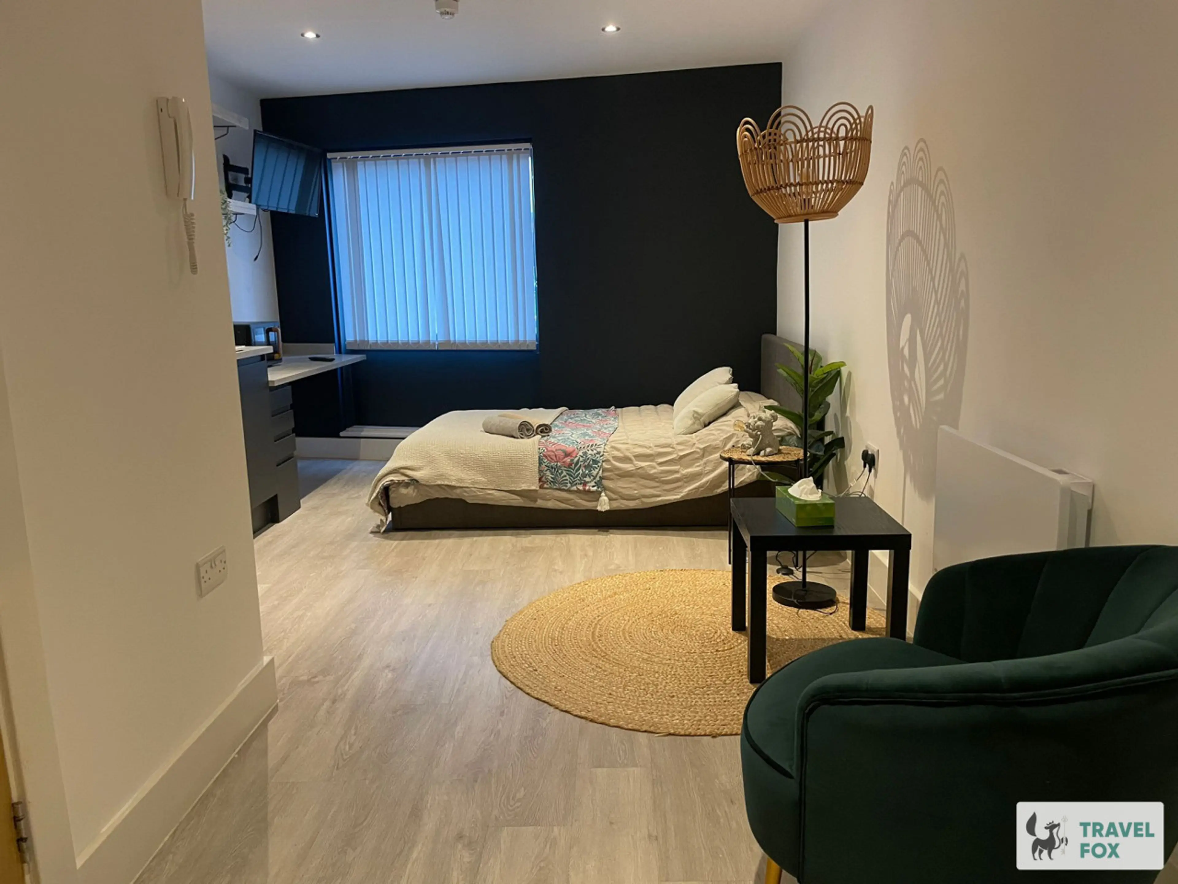 This stylish studio style flat features a double bed, kitchen, and ensuite bathroom. The building has its own gym, shared laundry room, and high speed internet. Conveniently located with free street parking around the corner, this flat is perfect for contractors. We have multiple flats available in...