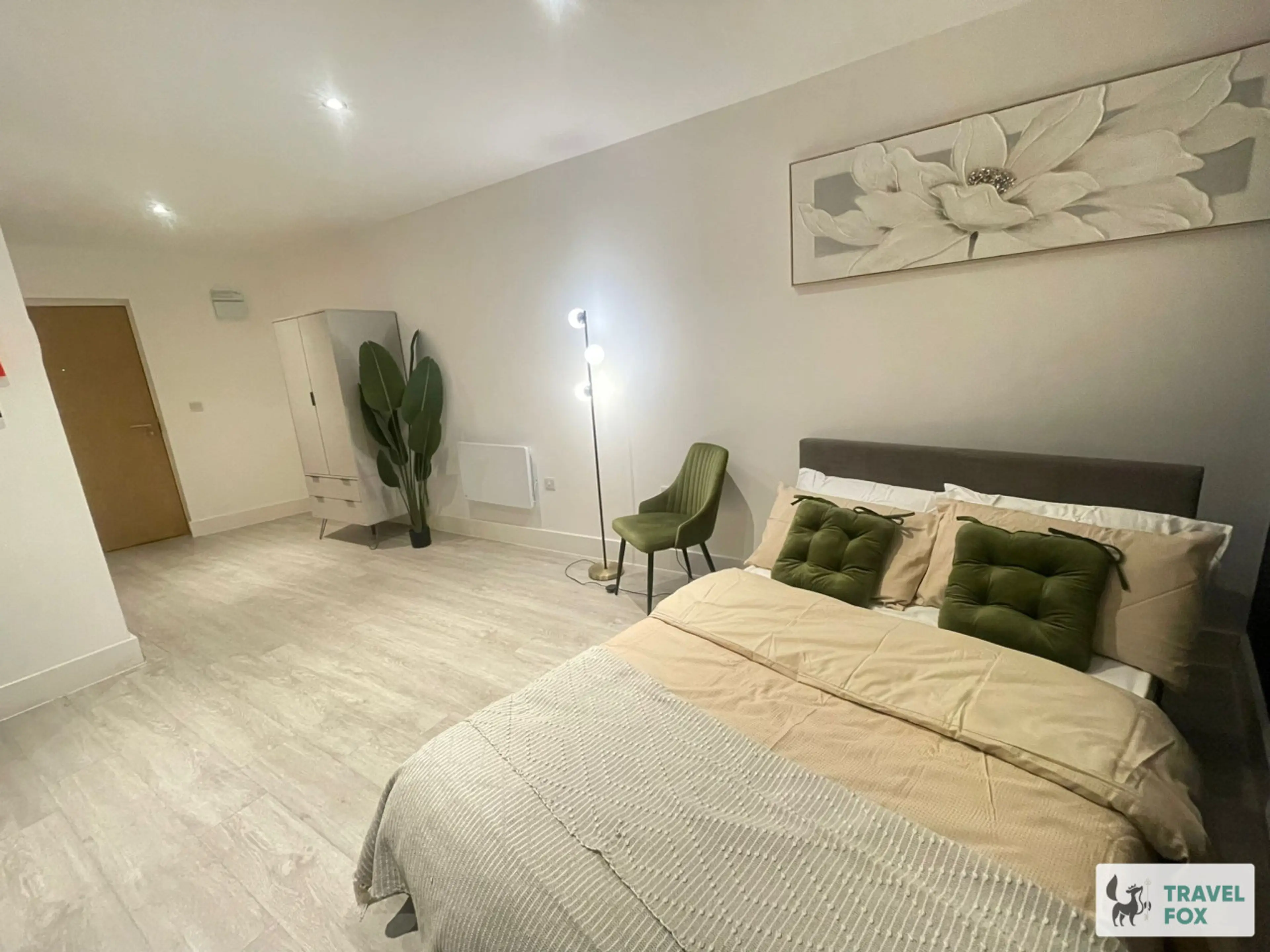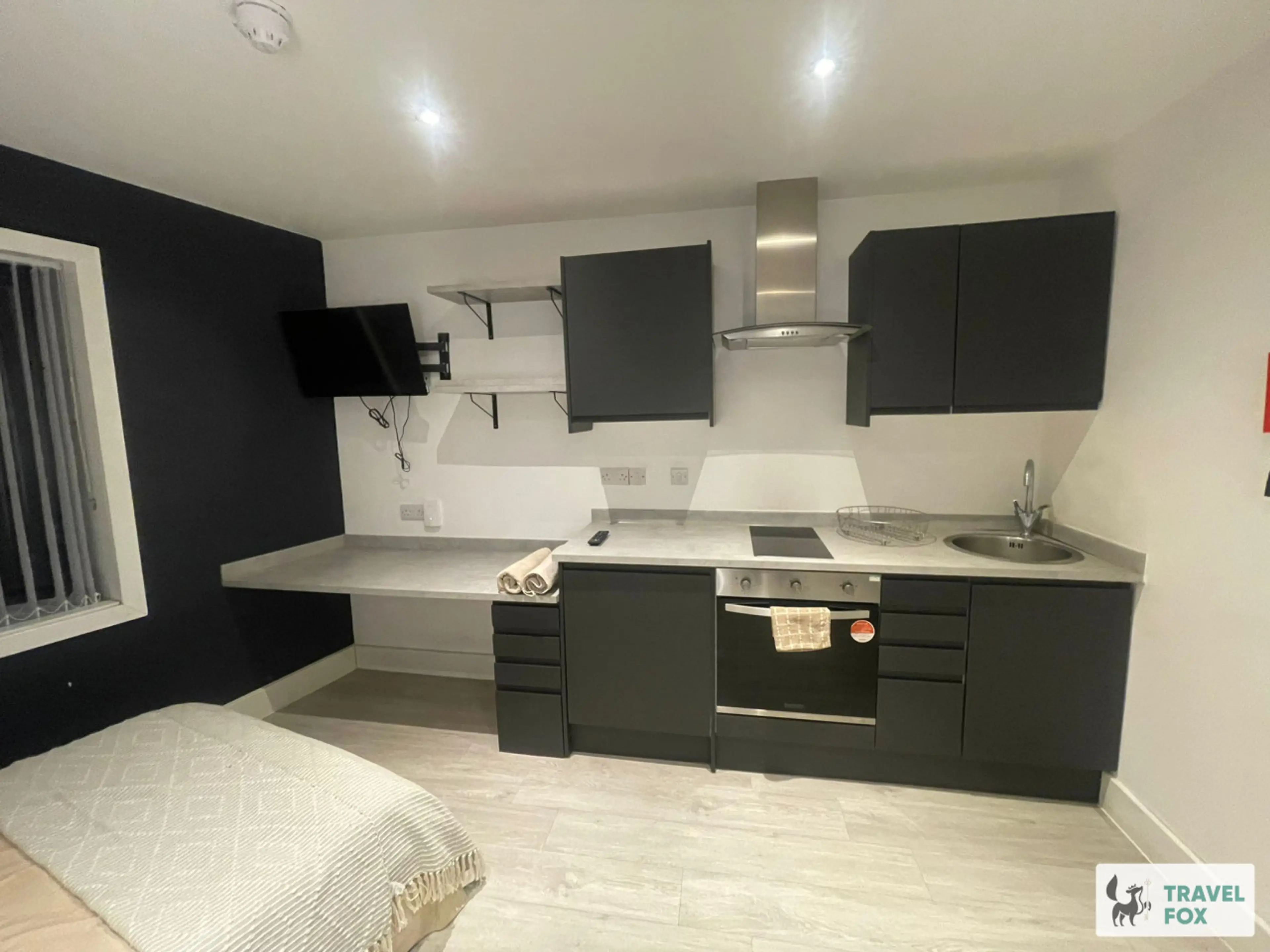 This stylish studio style flat features a double bed, kitchen, and ensuite bathroom. The building has its own gym, shared laundry room, and high speed internet. Conveniently located with free street parking around the corner, this flat is perfect for contractors. We have multiple flats available in...