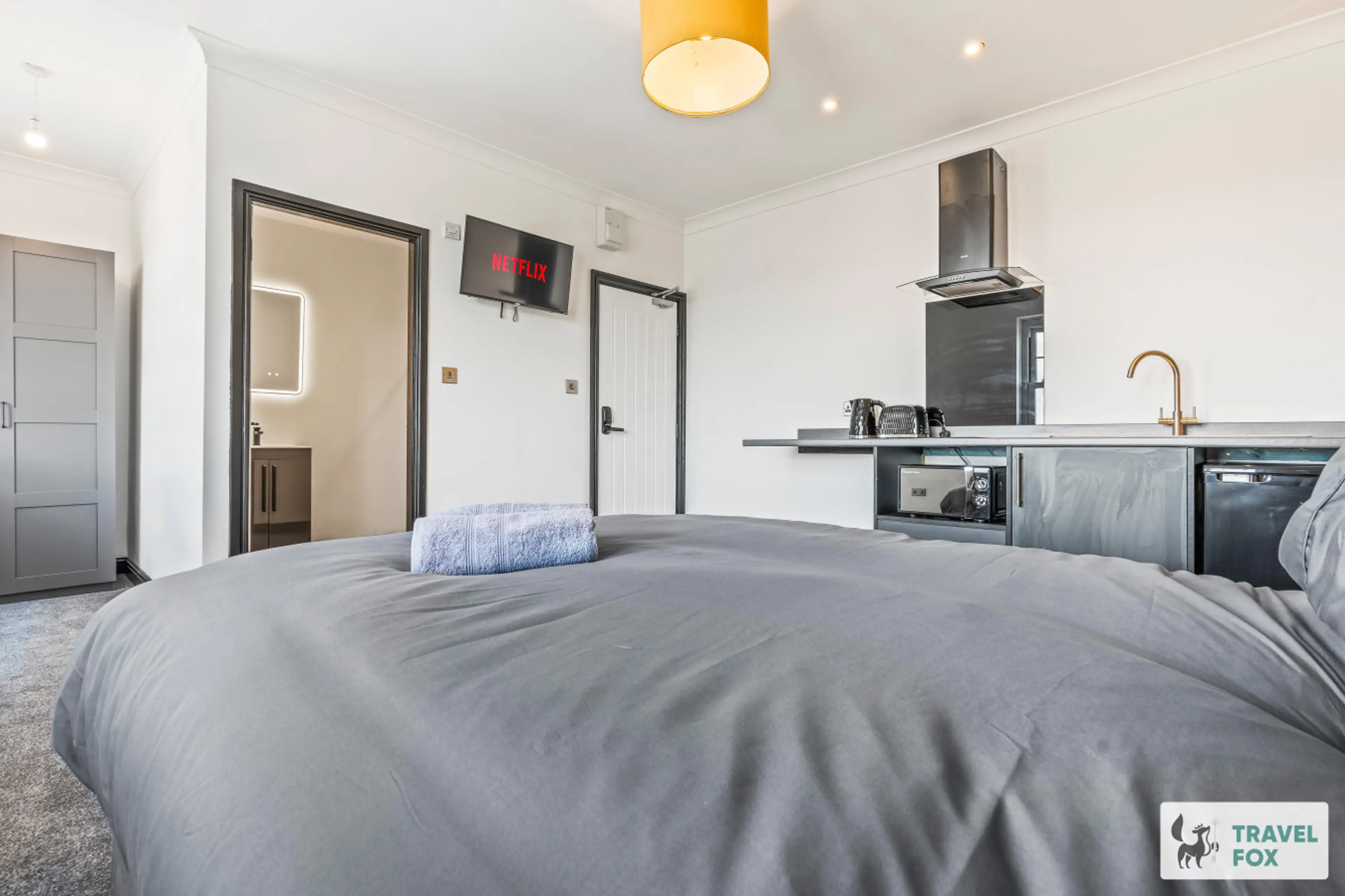 Enjoy your stay at this 1 bed flat, located just steps away from the beach! This flat features a small kitchen and ensuite bathroom. While this flat is perfect for solo travellers or couples, this building has multiple flats available and therefore can accommodate larger groups as well.