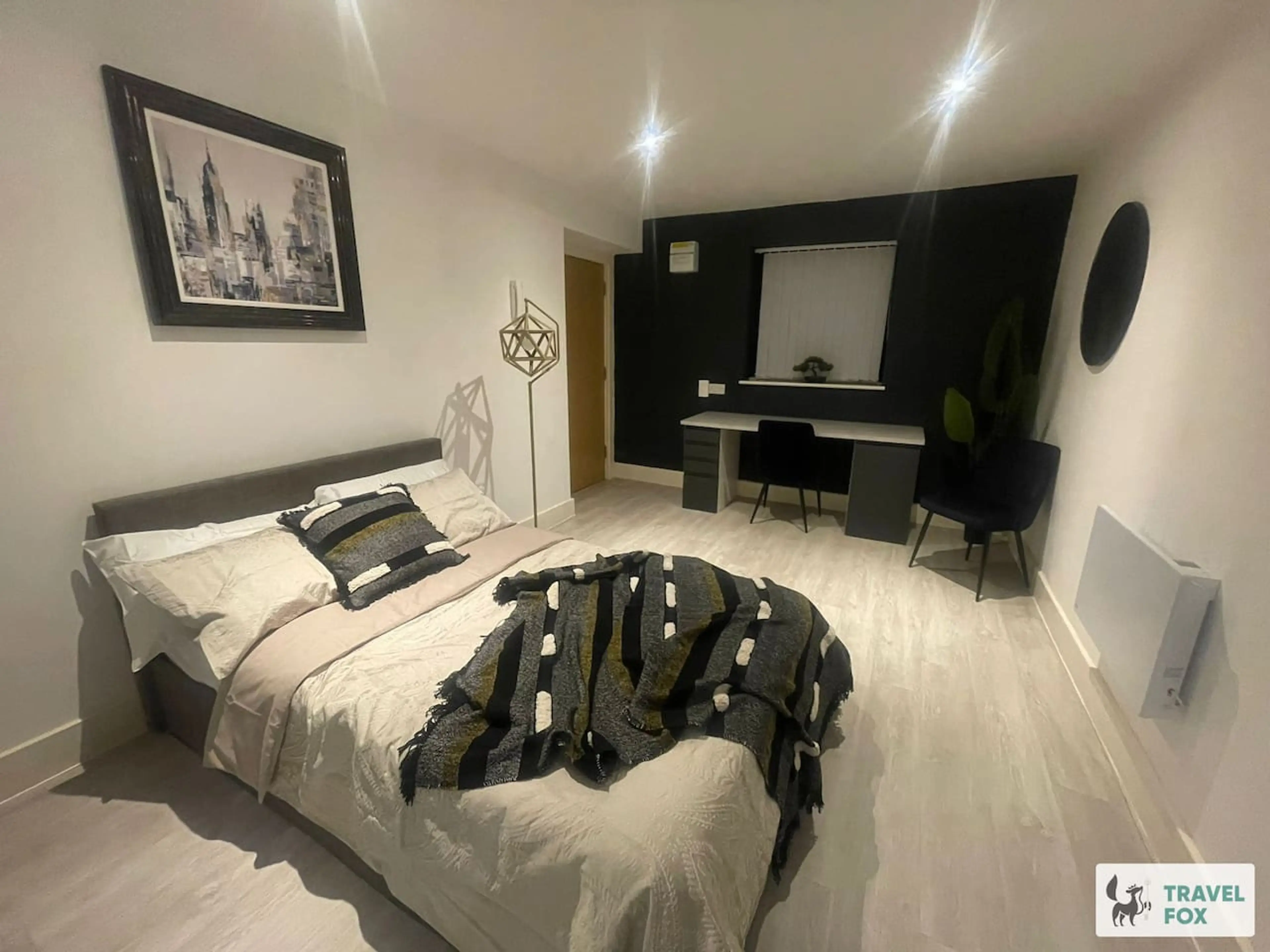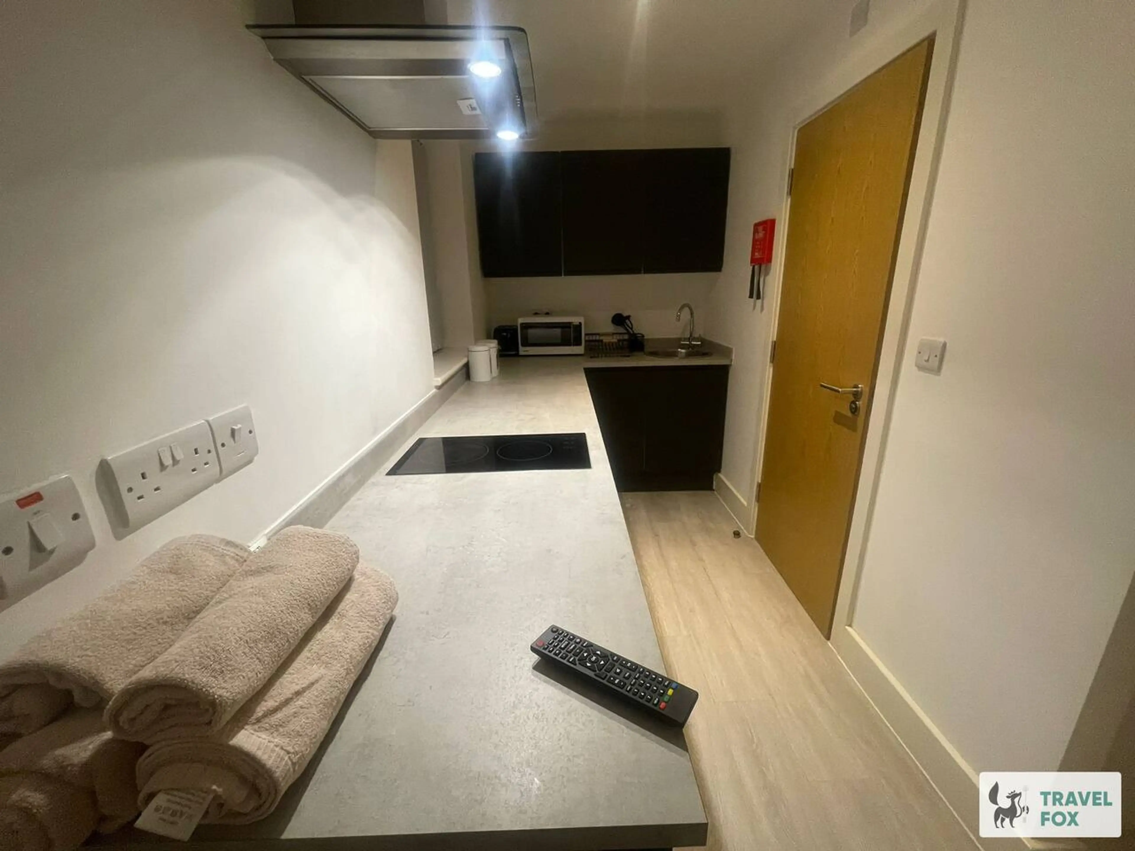 This stylish studio style flat features a double bed, kitchen, and ensuite bathroom. The building has its own gym, shared laundry room, and high speed internet. Conveniently located with free street parking around the corner, this flat is perfect for contractors. We have multiple flats available i...