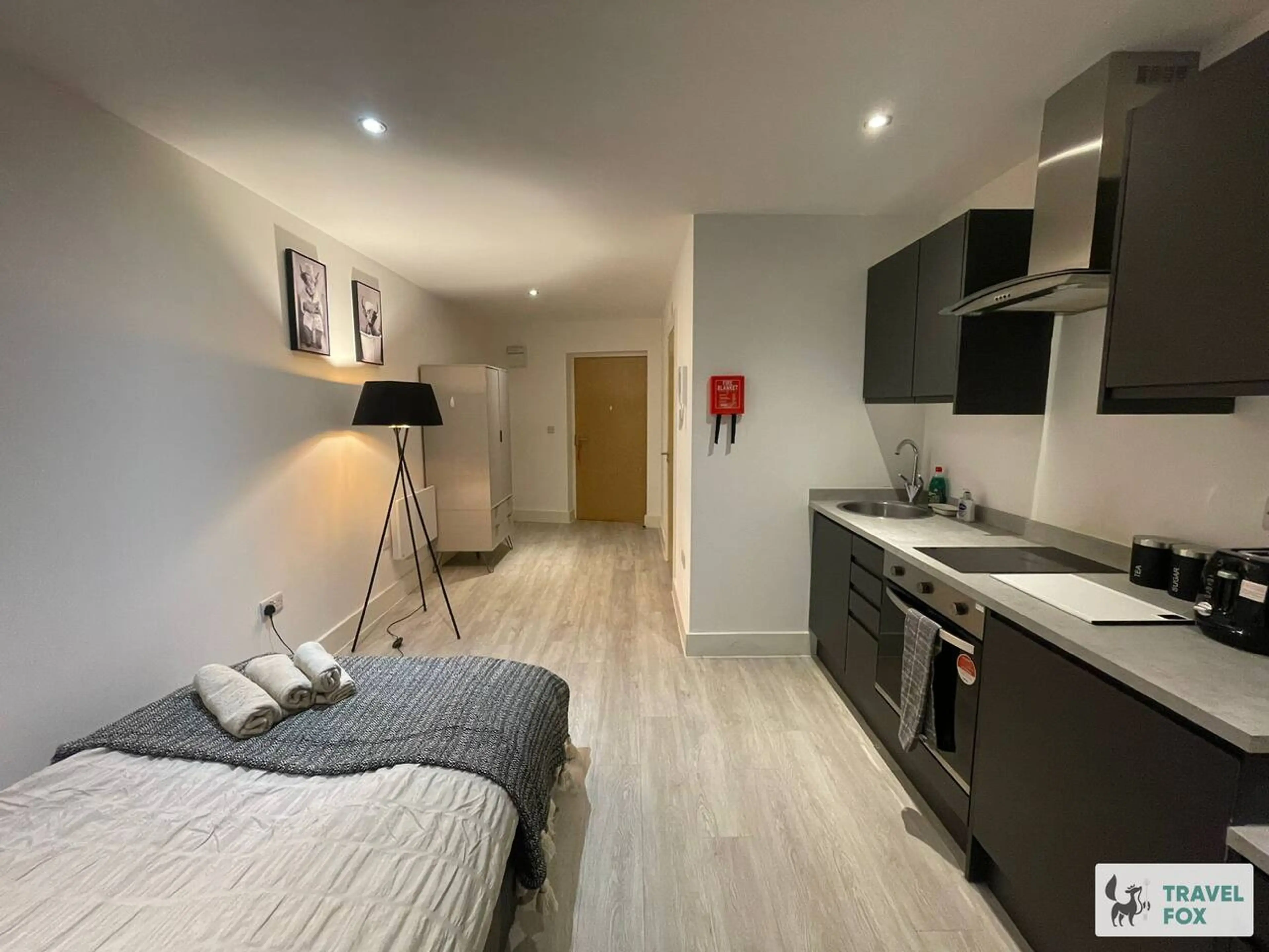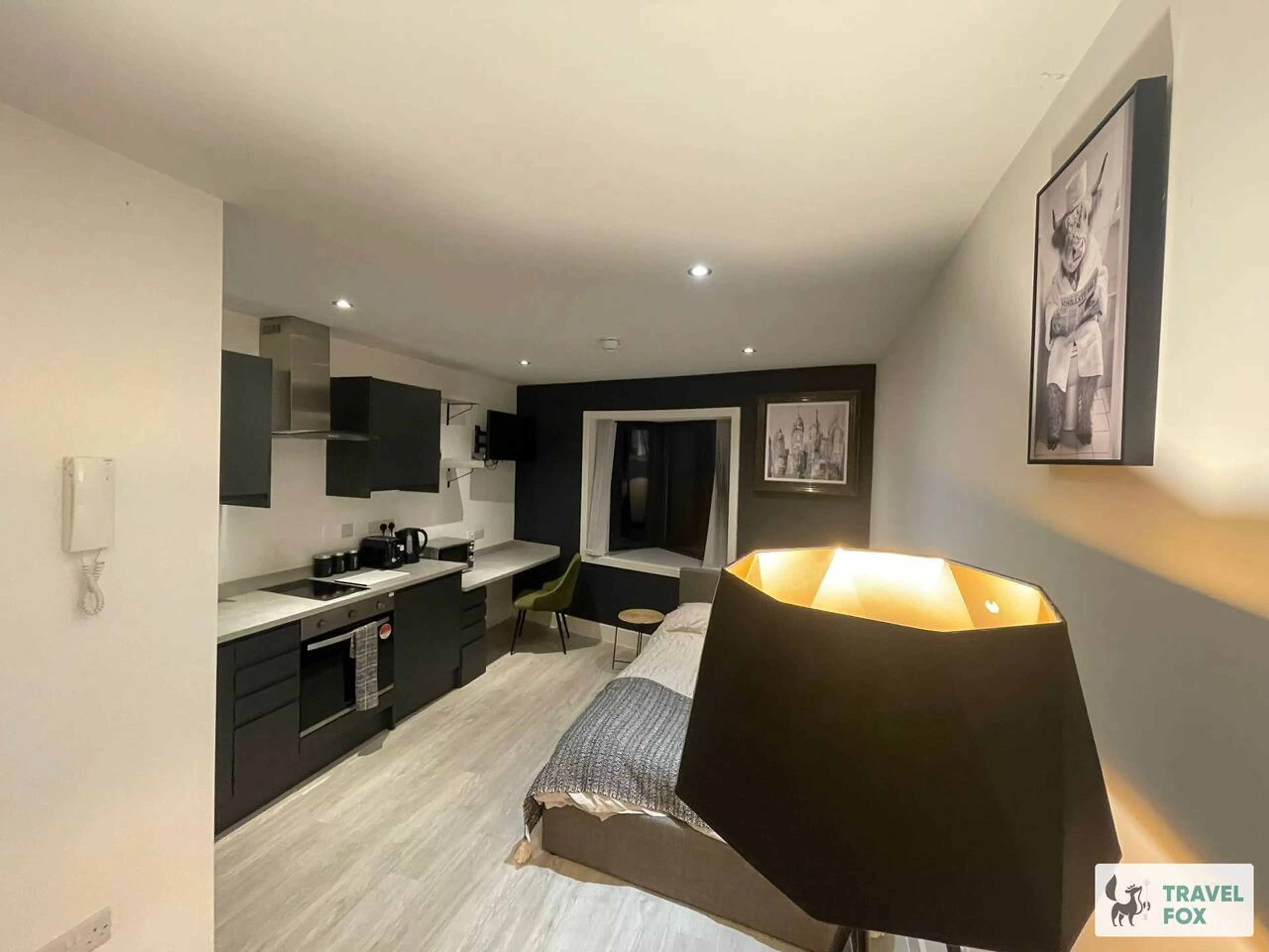 This stylish studio style flat features a double bed, kitchen, and ensuite bathroom. The building has its own gym, shared laundry room, and high speed internet. Conveniently located with free street parking around the corner, this flat is perfect for contractors. This studio is on the ground floor. ...