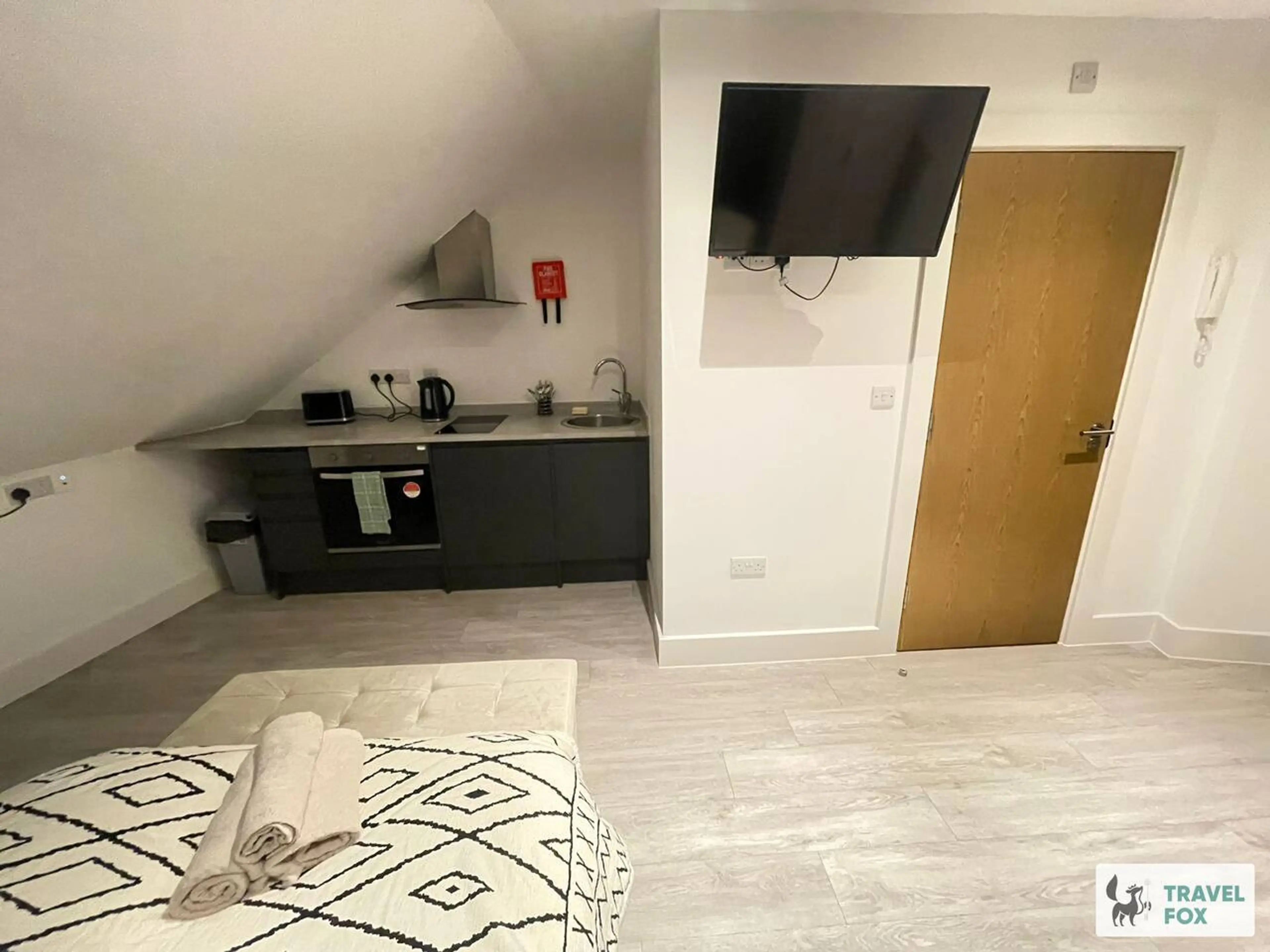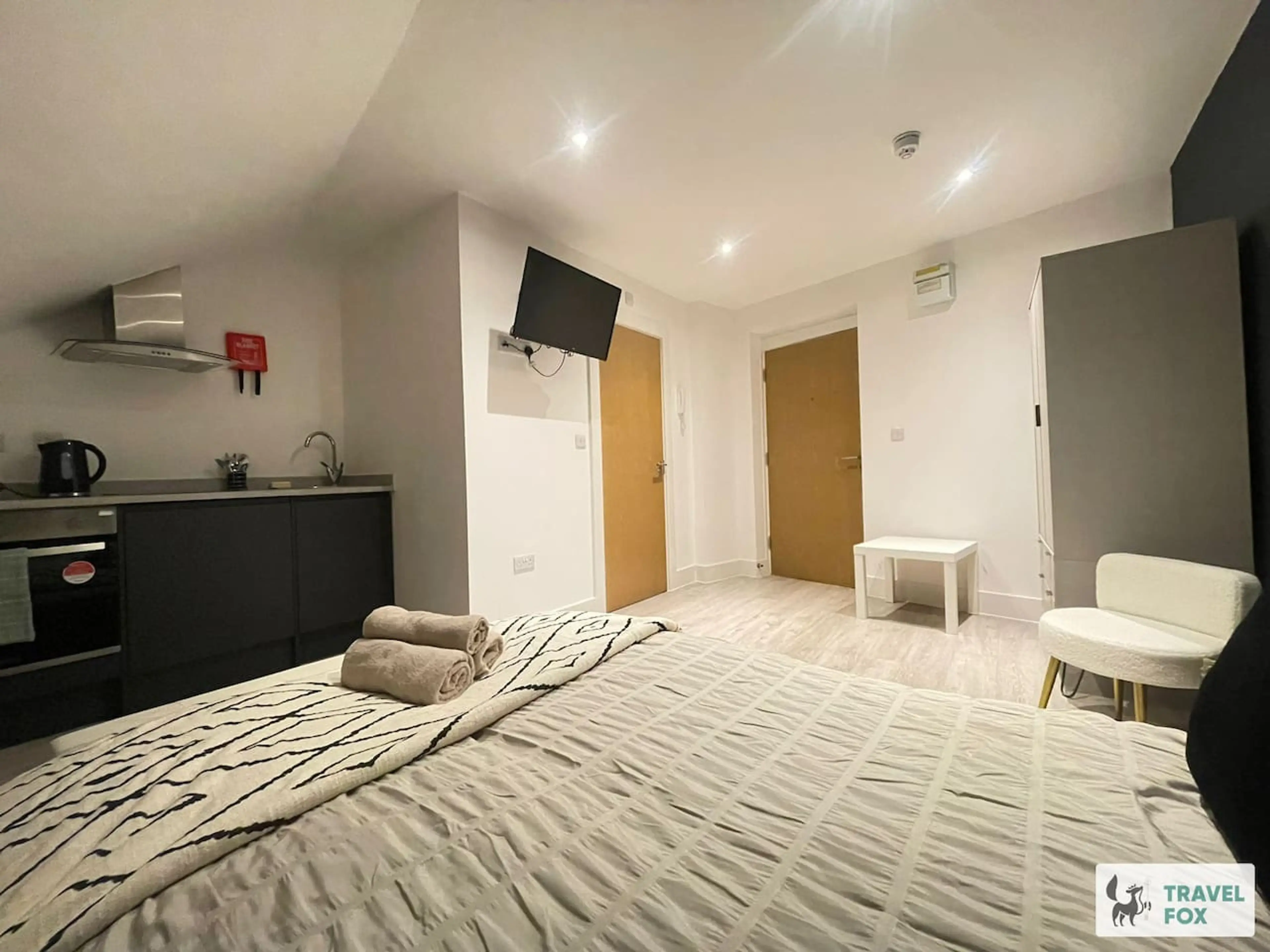 This stylish studio style flat features a double bed, kitchen, and ensuite bathroom. The building has its own gym, shared laundry room, and high speed internet. Conveniently located with free street parking around the corner, this flat is perfect for contractors. We have multiple flats available in...